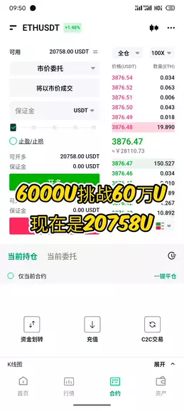 6000U挑战60万U,现在是20758U #区块链 #币圈 #BTC #财经
