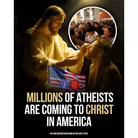 #Repost @sacredchad Millions are waking up. Not to politics. Not to ideology. But to Jesus Christ. Pew Research confirms: over 9 million Americans who weren’t raised Christian now openly follow Jesus. Barna adds: nearly 50% of Gen Z non-Christians are open to talking about Him. Across social media, former atheists are sharing testimonies. Encounters with God, Scripture, and a hunger that no secular life could fill. Christ is calling His lost sheep. And they’re hearing His voice.