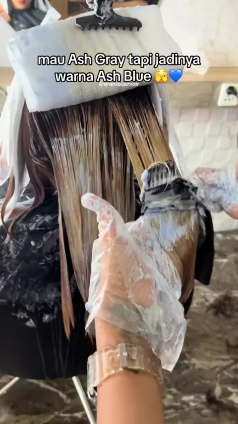 karna rambutnya sudah tidak memungkinkan jadi kita ganti ke ash blue yaa 🤗 #amarrabeautybar #ashblue #ashbluehaircolor #blueblack #blueblackhair #hairtok #salonbandung #f #
