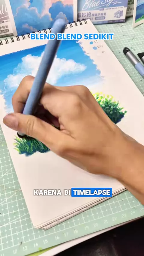 Replying to @mtchrn Belajar gambar ala Ghibli part 2 🥰✨️ #belajargambar #landscapepainting #oilpasteldrawing #ghiblistyle #drawingtutorial