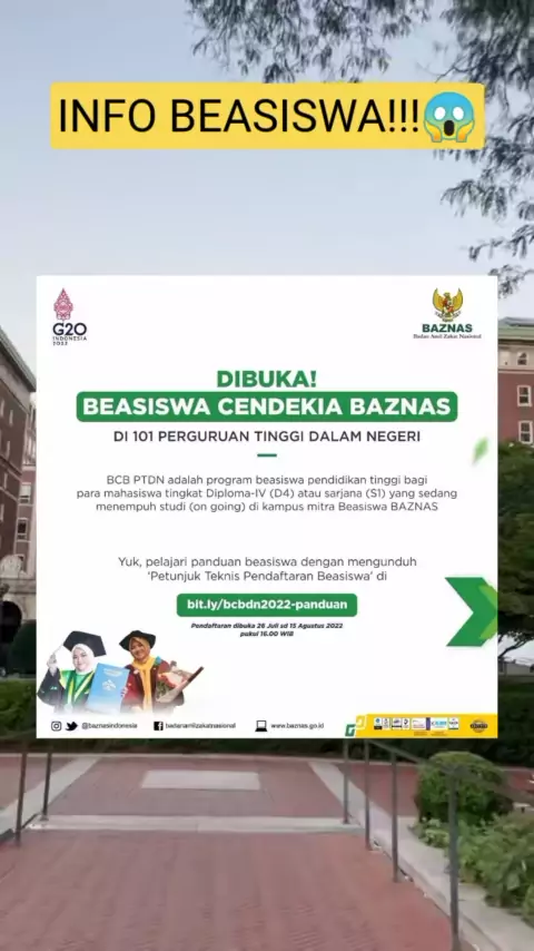 Halo TEAMBIS!! Ada info beasiswa nih buat kalian mahasiswa on going. Untuk lebih lengkapnya bisa kunjungi website yang tertera yaa 🤗##infobeasiswa2022#beasiswabaznas