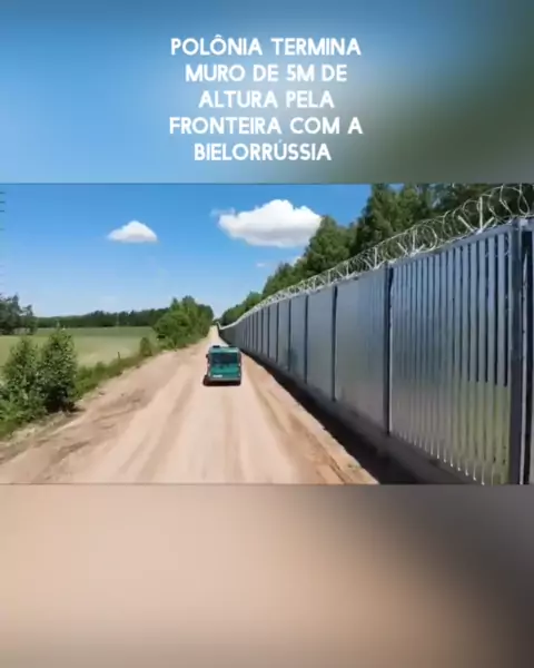 🇵🇱🇧🇾 — A Polônia concluiu a construção de uma cerca de 5 metros de altura na fronteira com a Bielorrússia. 49.000 toneladas de aço foram usadas para a construção desta instalação fronteiriça. Além disso, 2,5 mil câmeras de vigilância estão instaladas na parede #viral #kwai #Notícia #fy #fyp