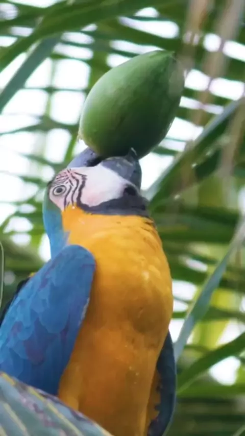 Arara bebendo água de côco!