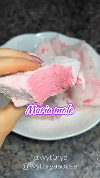 MARIA MOLE 💖🤤 2 pacotinhos de gelatina de morango, 130ml de água quente, e 250g de açúcar. 🍓 Misture todos os ingredientes e depois coloque para bater na batedeira de 15 a 20 minutos, ou até chegar ao ponto correto 💖 Gostou da receita? Então já marca o @ de quem vai fazer pra você! 💖 Já aproveita e me segue pra não perder nenhuma receita Maravilhosa! 🥰💖🍓