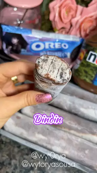 DINDIN GOURMET DE OREO COM NUTELLA! 馃挋馃崼 1 leite condensado, 1 creme de leite, 1 pacote de bolacha Oreo e 2 colheres de leite em p贸. Bate tudo muito bem e reserva. Coloque Nutella nos saquinhos para dindin com a boca para fora, espalhe bem. Com a ajuda de um funil, transfira a base para o saquinho deixando sobrar uma ponta para amarrar bem. Deixe no congelador por 24 horas e pronto! 馃挋 Gostou da receita? Ent茫o j谩 marca o @ de quem vai fazer pra voc锚! 馃挅 J谩 aproveita e me segue, pra n茫o perder