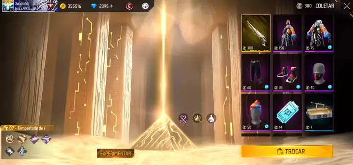 Pegando a nova skin do Doze, Tempestade de Areia, com 2309 dimas.