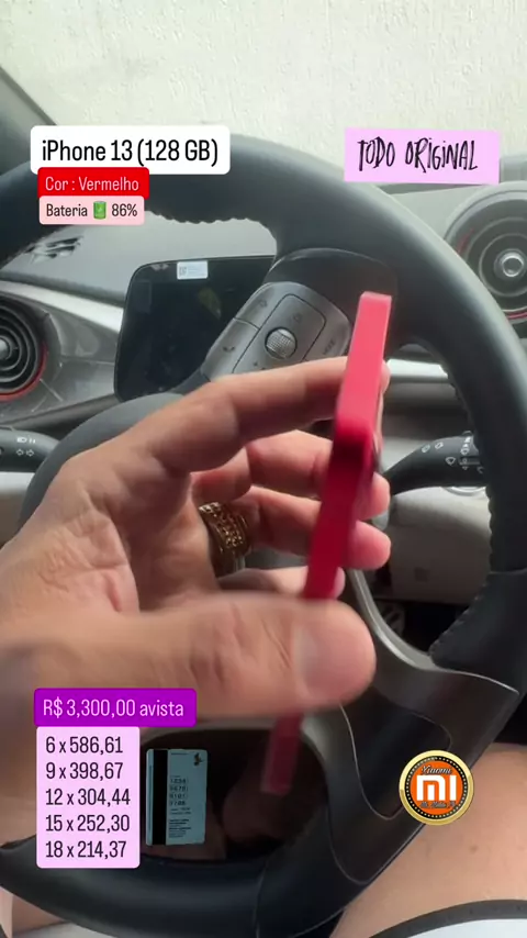 iPhone 13 Memória 128gb Saúde da bateria 86% R$ 3,300,00 avista