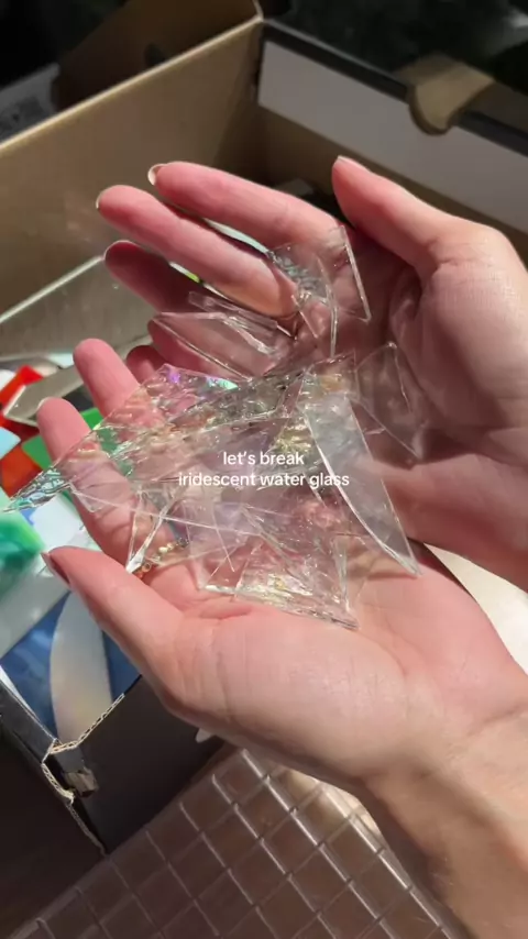 Você consegue adivinhar o que eu estou fazendo? ☁ ️ # vitral # vitralcutting # vitralasmr # vitralart