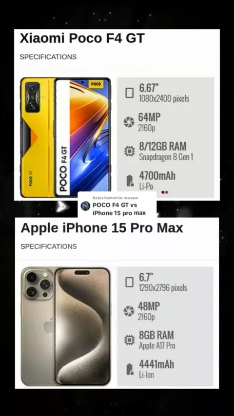 Membalas @mo.sew #xiaomi #xiaomipocof4gt #vs #apple #iphone #iphone15promax #comparison #gadget # # ゚viral #ferigadget yyyyyyyyyyyyyyy