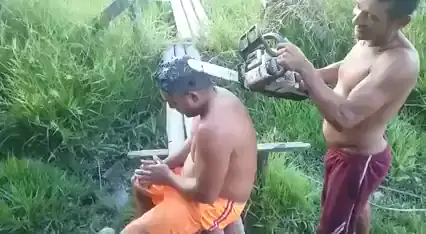 # cortando o cabelo com motosserra
