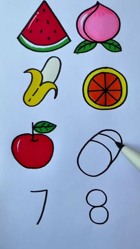 Gambarlah buah dengan angka 12345678.