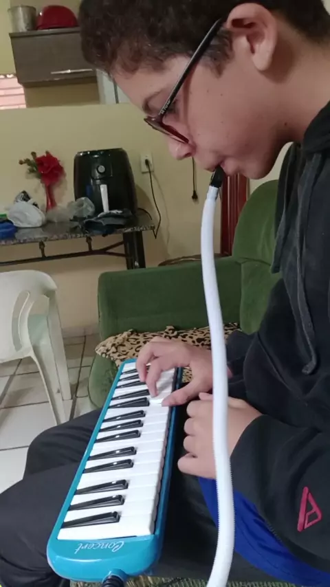 Isaac tocando escaleta