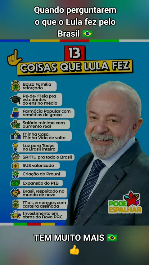 Quando perguntarem o que o Lula fez pelo Brasil 🇧🇷👍 #democraciaSempre🇧🇷lulapresidente🇧🇷 #semanistia #lula2026 #maisviews @Lulaoficial(O150001319192536) @VÍ ÁLVARES(O150001013045029) @Igreja Biscateriana(O150001353442957) @RADAR INSTANTÂNEO(O150000166424050)