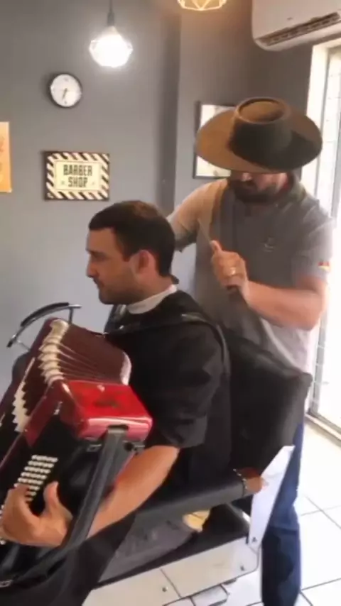 Chegando o final de semana... E o gaiteiro se foi a barbearia para dar um trato nas melenas . O que vcs acharam da tesoura ✂ do barbeiro? 🪗😂🤦♂️ 🎬 Landro Oviedo