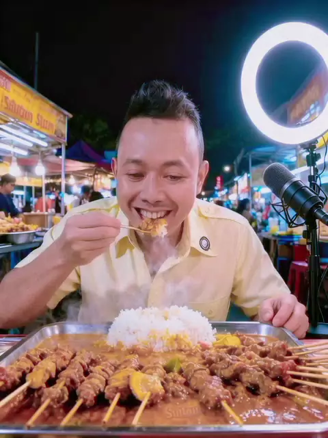 mukbang, buka puasa makan nasi sate padang Sultan yang disajikan di nampan besar.