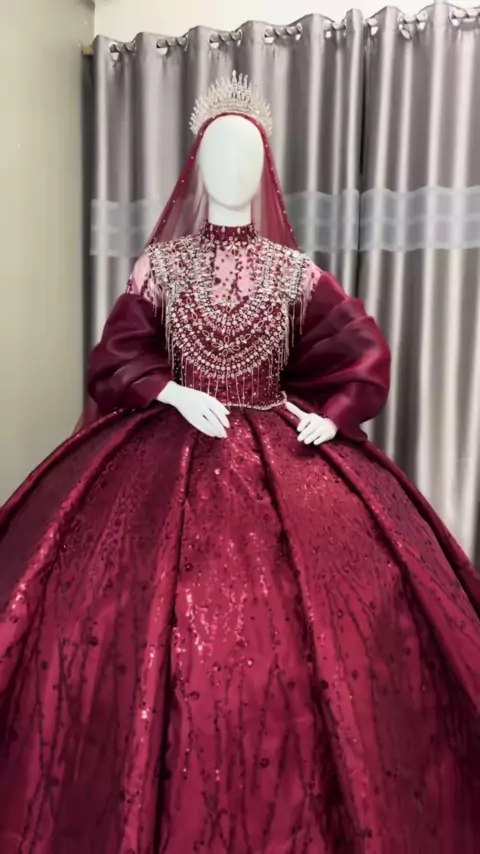 Gaun maroon premium #gaunmaroon #gown #gaun #zafiyakebaya #lewatberanda #photography #adminzafiyakebaya #pasartanahabang #payetjepang #wedding #wo #dekorasiwedding #mua #pelaminanmodern #periaspengantin
