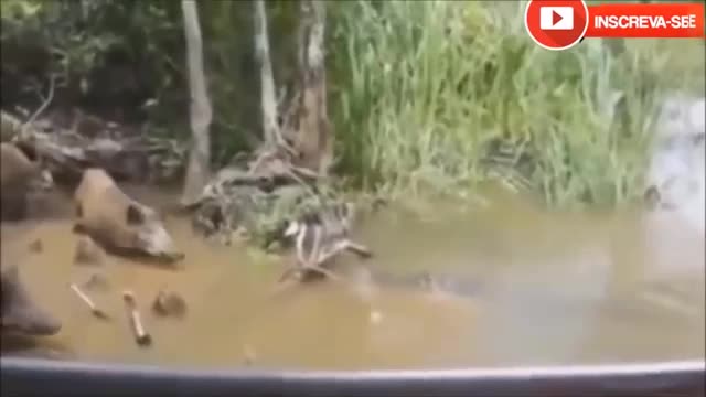 vcs como a raça humana não presta, jogando comida para os javali pegar.so pra ver o crocodilo atacar😁
