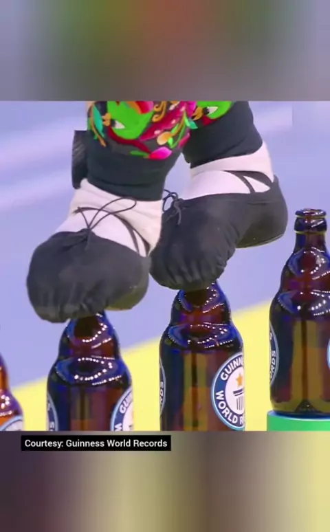 Rekor dunia berjalan meniti tumpukan botol #botol #rekordunia #guinnessworldrecords