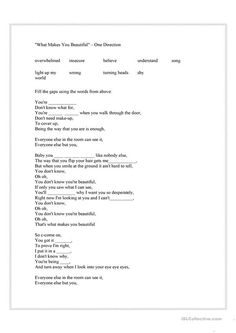 One Direction - What makes you beautiful gap fill