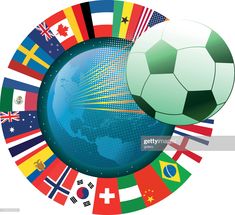 international soccer symbol with ring of international flags,...