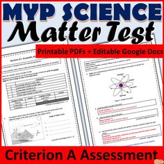 MYP Science Criterion A Assessment - Matter Test including Answers & Mark Scheme