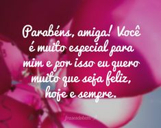 Parabéns, amiga! Você é muito especial para mim e por isso quero muito que seja feliz, hoje e sempre. Nossa amizade nunca foi perfeita, mas sempre