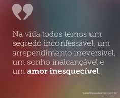 Na vida todos temos um segredo inconfessável, um arrependimento irreversível, um sonho inalcançável e um amor inesquecível.