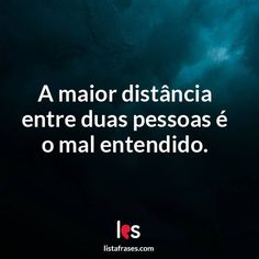 A maior distância entre duas pessoas é o mal entendido.