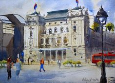 Stari Trg Republike Beograd Mala Akvareli Beograda 25x36cm
