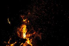Queima de bosques com fogueiras, chamas e fumaça. figuras impetuosas elementares estranhas estranhas estranhas na noite preta. | Foto Premium