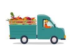 Um agricultor dirige um caminhão com uma colheita de vegetais colheita da agricultura do outono | Vetor Premium