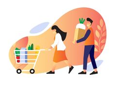 Baixar casal comprando e carregando comida gratuitamente