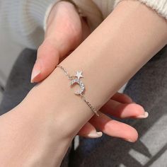 Korean Cute Star Shiny Zircon Moon Charm Bracelet for Girl Trendy Elegant Rhinestone Moon Chain Bracelet Women Jewelry Gift sl093yin