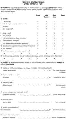 fibromialgia em PT: FIQ - Questionário de Impacto da Fibromialgia