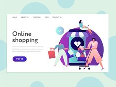 Aterrissagem de compras online. aplicativo de compra pela internet e entrega fácil. design de vetor de página da web de comércio eletrônico e transações seguras. loja de marketing online, compra na ilustração de loja da internet | Vetor Premium