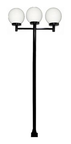Poste Luminária Triplo Globo G Braço Reto Jardim Preto 300cm