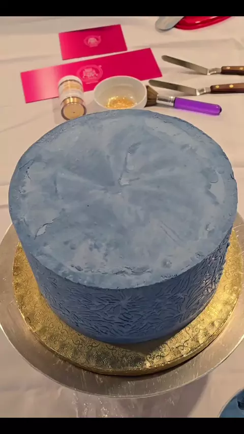 bolo azul e dourado decorado com stencil #confeiteira #bolo #bolosdecorados #festa #aniversário