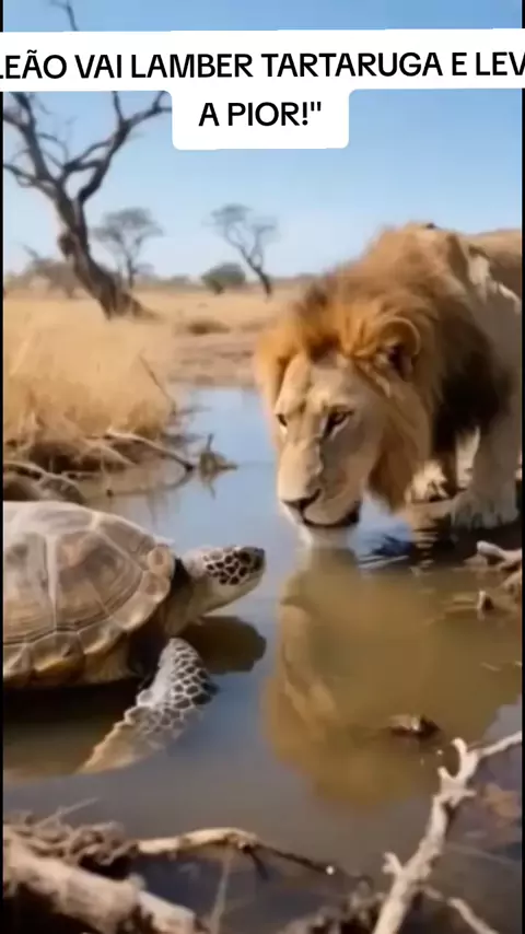 Tartaruga morde língua de leão #leão #tartaruga #animais