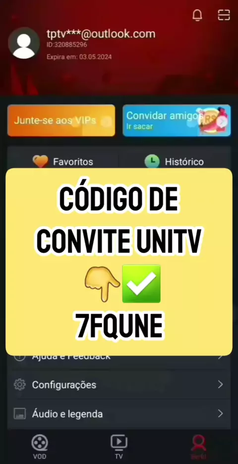 Código Resgate Unitv Vip Grátis✅⭐👇 7FQUNE #código #tvonline #filmes #unitv #tv