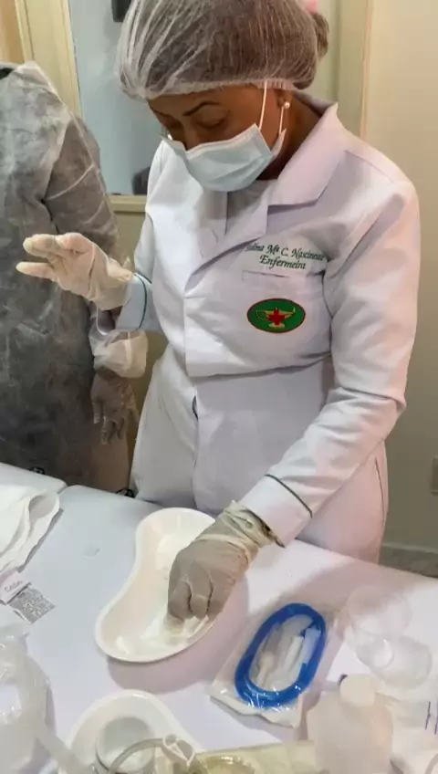 Limpeza da Gtt. Gtt é uma sonda localizada diretamente na parede abdominal, que vai direto pra o estômago do paciente, para administração de medicamentos e dietas enteral.