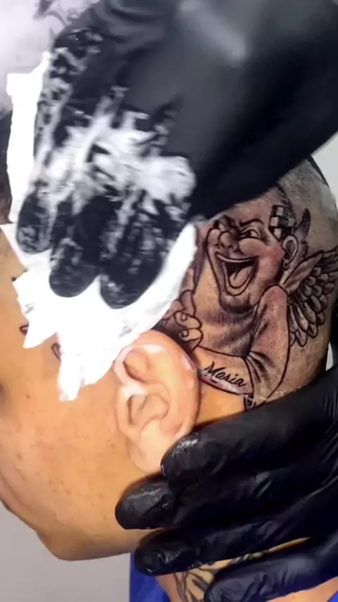 TATUAGEM ANJO E DEMÔNIO NA CABEÇA