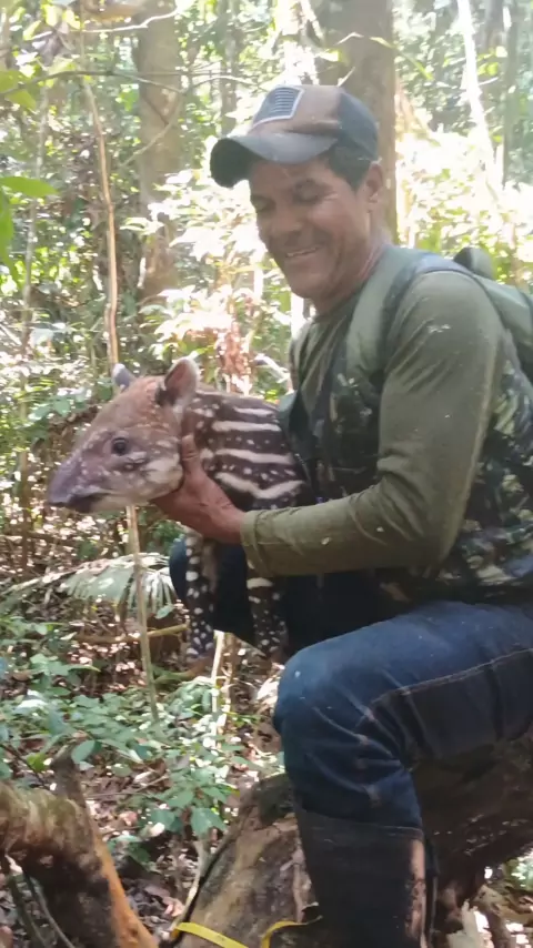 aí galera um filhote de anta #bicho #floresta #bebê #familia #sejacriador