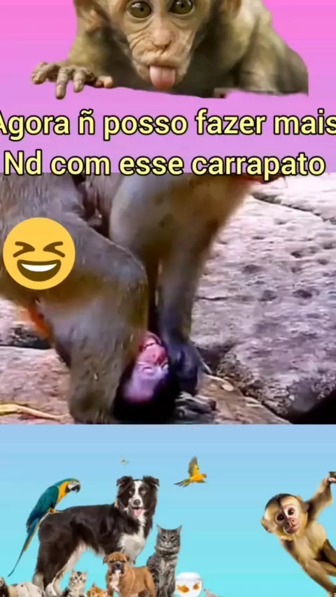 Macaquinho é judiado pela sua mãe #Macaco #carrapato #fy #animais #PetsHilarios