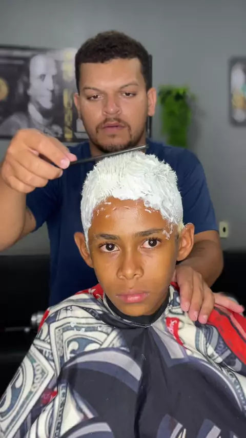 Parte 3 corte moicano americano 💈💇🏻vejam só a régua que eu lancei nele❄️📏✅.. . . . . #Barbeiro #barber🔥🔥 #cabelo #luzes #fade