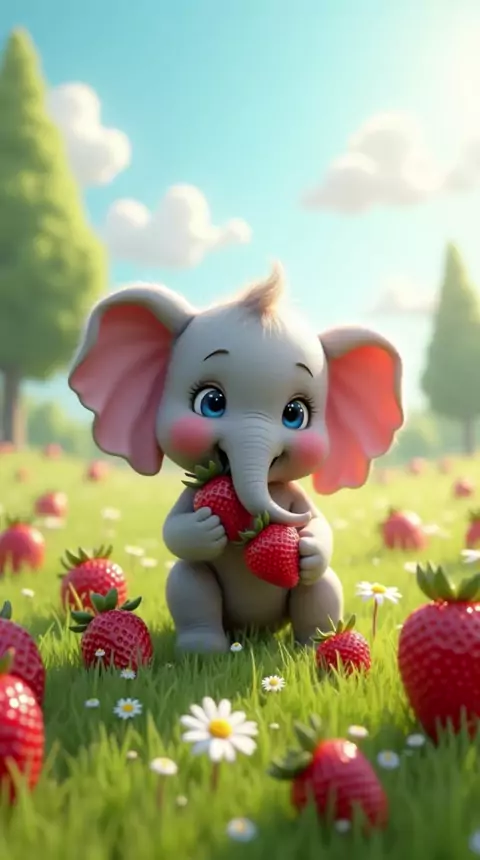O Elefantinho e os Morangos Mágicos 🍓✨ #kawai #viral #ia #elefantefofo