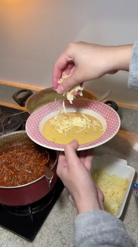 Polenta mole com carne moída e queijo 🍽️😍 #Receita #Comida #cozinha #donadecasa #topz