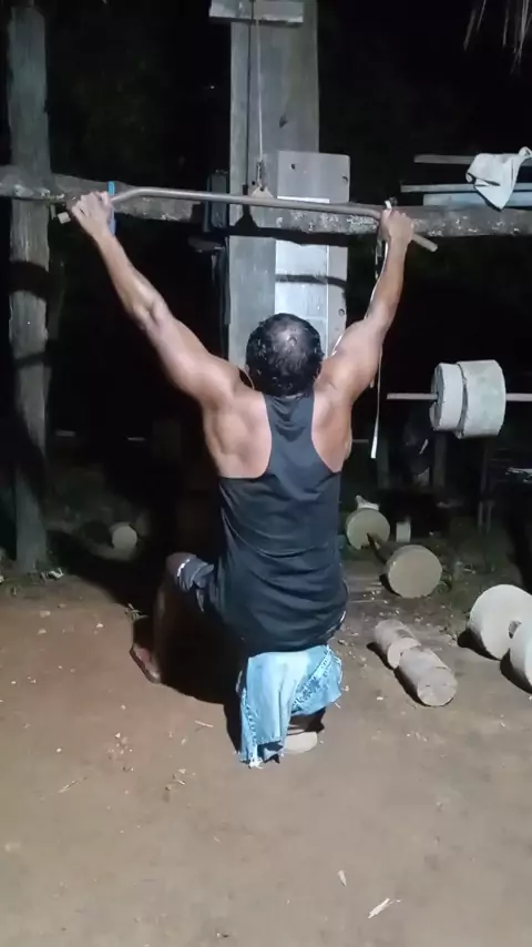 Vamos de polia alta pegada aberta bora fazer aí,que é treino top. #treinoemcasa #bodybuilding #Musculação #