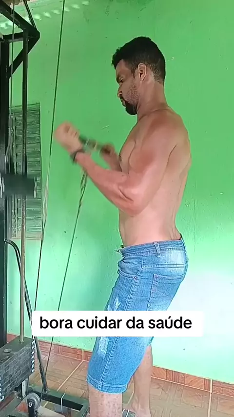 treino de bíceps rosca direta com barra na polia baixa #atividadefisica #Musculação #gym #treinoemcasa #biceps