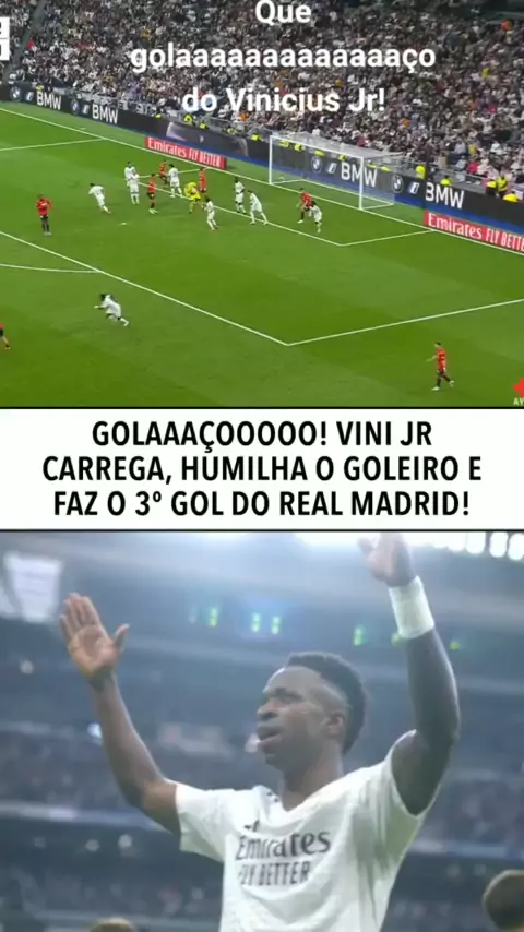 Que golaaaaaaaaaaaaaço do Vinicius Jr! Ele recebeu lançamento do Lunin, driblou o goleiro do Osasuna e mandou para dentro! #LALIGA #LALIGA #futebol #realmadrid #vinijr